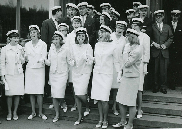 Bo Sundström skrev att han vill minnas att det ska finnas en bild av av alla fyra dagarnas studenter tagen i trappan upp mot aulan. Är det möjligtvis någon som har den bilden? Nu är bilden återfunnen! Kommer inom kort att presenteras på denna webbsida. |